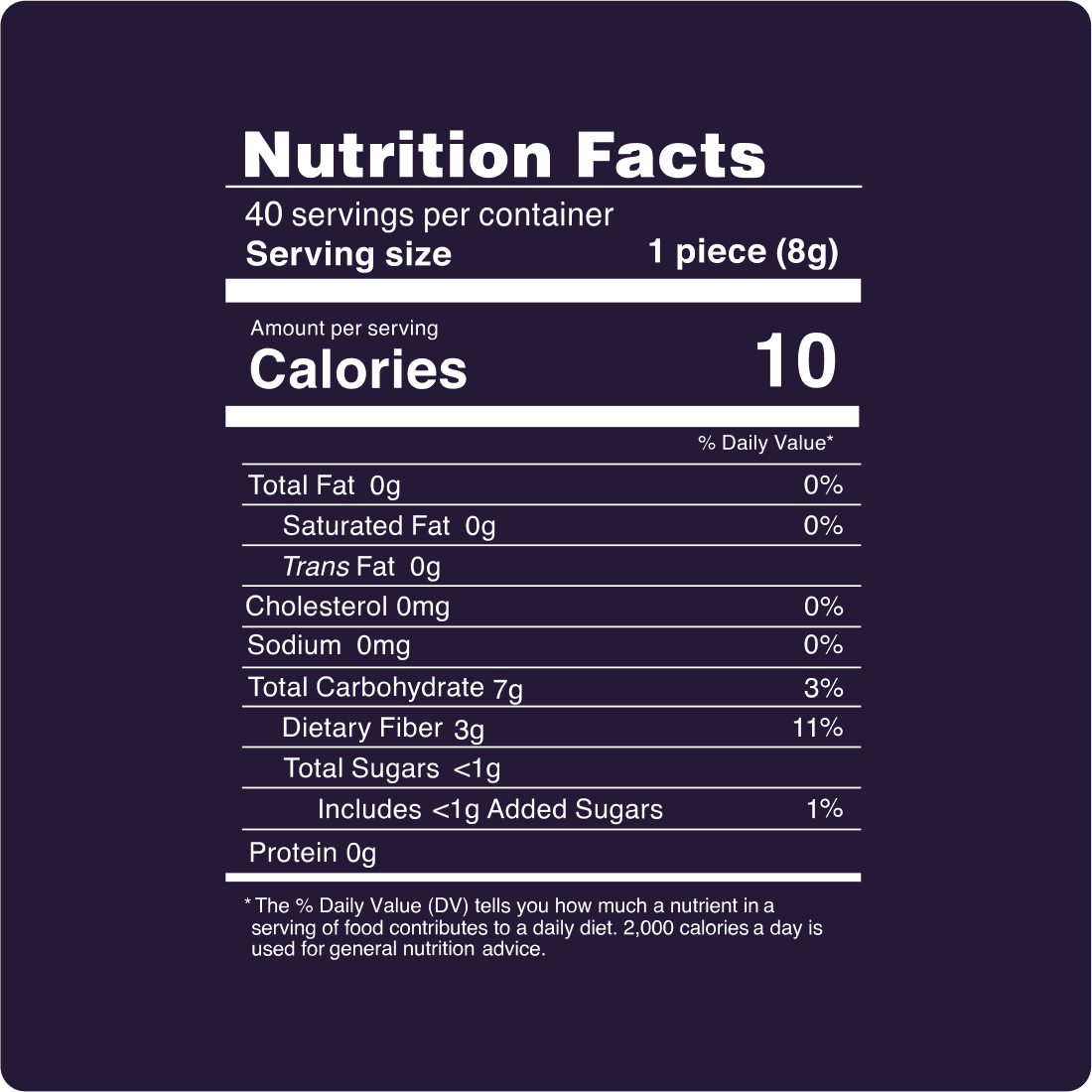 Soluble tapioca fiber, isomalt, water, pectin, citric acid, sorbitol powder, mtc oil, lecithin (from sunflower seeds) natural flavoring, natural color, melatonin, L-theanine, gamma-aminobutyric acid (GABA) hemp derived isomers.