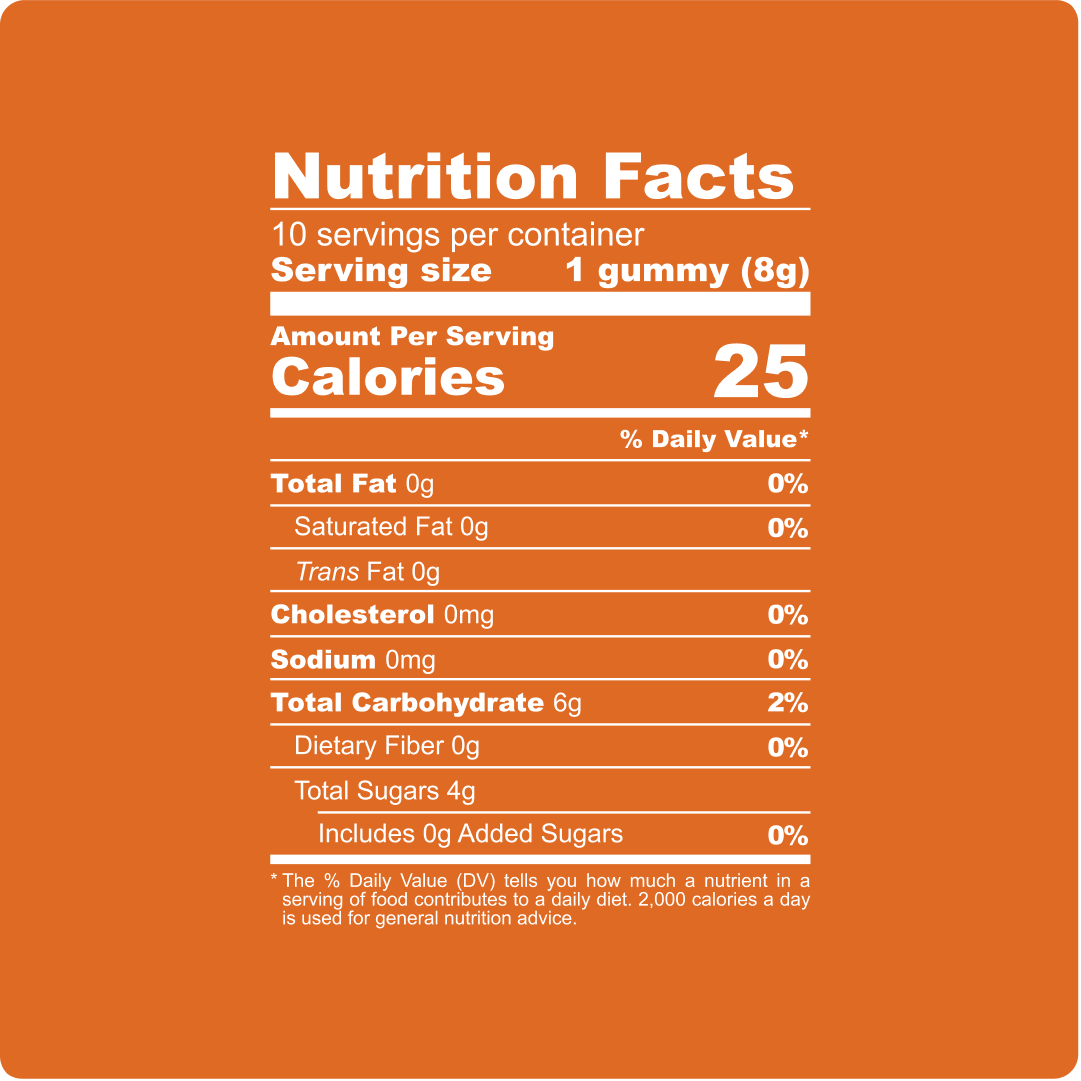 Bright orange soda energy meets bubbly citrus flavor, packed in a satisying, uplifting bite. Perfect for powering through the afternoon.