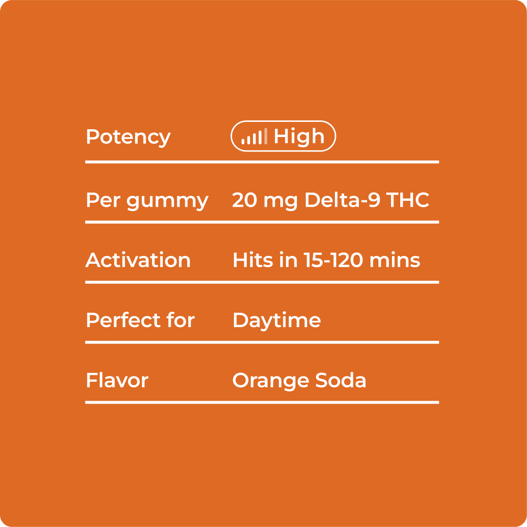 Unlike heavier Indica-based edibles, Orange Soda Shop won’t leave you couch-locked. Instead, it delivers a smooth, functional high that keeps you moving and grooving throughout the day.