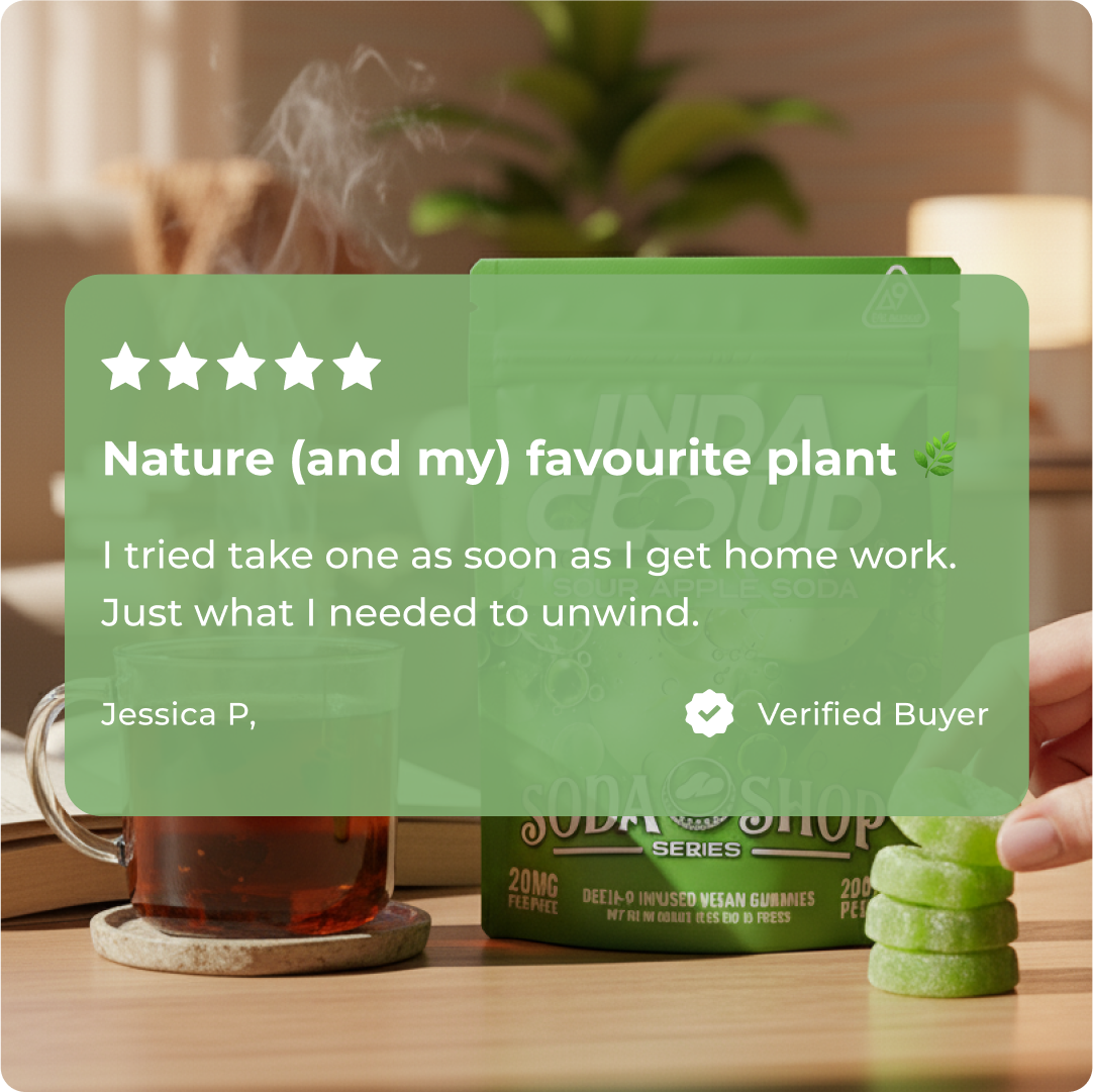 Sour Apple Soda Shop Dispensary Grade Delta 9 THC Gummies are highly potent and perfect for consumers who appreciate a powerful cannabis experience. Every gummy in the package delivers a generous 20mg of Delta 9 THC, resulting in an overall strength of 200mg for each 10-piece pack. These potency levels are relatively high in the cannabis edibles market, highlighting the robust psychoactive experience you can anticipate when consuming these gummies. But potency isn't one-size-fits-all. Some users might prefer this potency level, while others—especially beginners or those with a lower tolerance to THC—might find it overwhelming. So, we recommend starting with a smaller dose, perhaps half a gummy, and gradually increasing if required. Before embarking on a new cannabis product journey, consulting a healthcare professional is always advisable to ensure a safe and enjoyable experience.